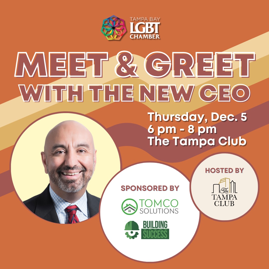 Join us for a meet and greet with newly appointed Tampa Bay LGBT Chamber CEO, Rene Cantu on Thursday, December 5th at The Tampa Club! Enjoy a complimentary drink (first 40 guests), eat some delicious charcuterie, and learn more about the vision for the Tampa Bay LGBT Chamber under new leadership. This is a perfect opportunity to meet Chamber and community members.