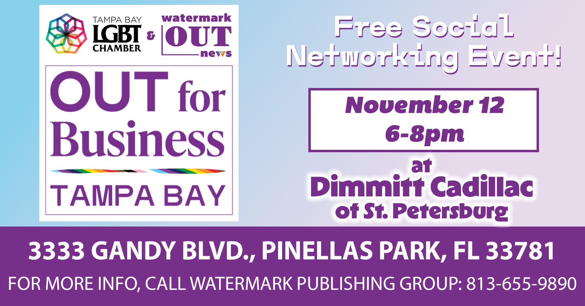 The Tampa Bay LGBT Chamber and Watermark OUT News are proud to bring you our next after-hours networking opportunity on Wednesday, November 12th hosted by one of our newest members and our good friends at Dimmit Cadillac of St Petersburg! Join us from 6:00 pm - 8pm to make connection with Chamber and community members, enjoy delicious atmosphere and complimentary wine, beer and appetizers, and network with some of our favorite friends and potential new business associates. This month's raffle will benefit The Joy Ride. Register now!