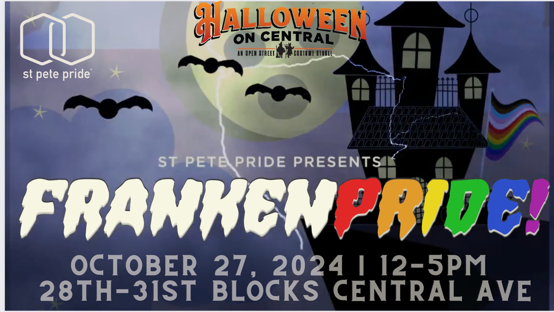 Join St Pete Pride for the 4th Annual FrankenPride at Halloween on Central, October 27 from 12-5pm.