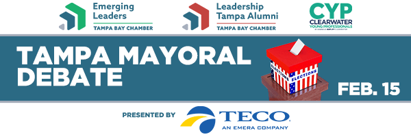 The Tampa Bay LGBT Chamber, in partnership with Tampa Bay Area Chambers, invite the region to the 2023 City of Tampa Mayoral Debate. Attendees will learn about the candidates’ platforms and stances on critical issues as they respond to questions submitted by our leadership programs. This debate will allow our region to participate in the civic process by reflecting on the past, building upon our successes, and exploring solutions that will move Tampa Bay forward.
