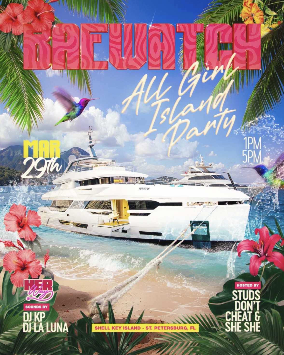 A day event celebrating the Black and Brown wlw community on an island. The island can only be accessed by boat. There will be a commercial vessel for the general admission attendees, and the VIP attendees will be able to experience a round trip on a YACHT to Shell Key Island, which will also include food, drinks, and Her Way merch.