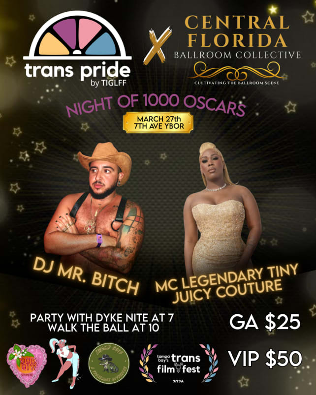 TIGLFF is excited in 2026 to launch the Trans Pride Dance Party & Ball, themed this year as “Night of 1000 Oscars,” in partnership with Central Florida Ballroom Collective.